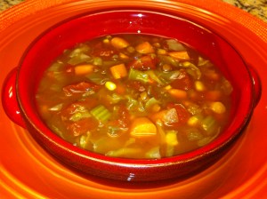 I have been searching for a good lentil soup recipe and I think I have discovered/created one! I found a recipe on Allrecipes.com for Winter Lentil Vegetable Soup which provided the inspiration for this recipe–but I think I’ve greatly improved on it both in ingredients and making it a crockpot recipe!