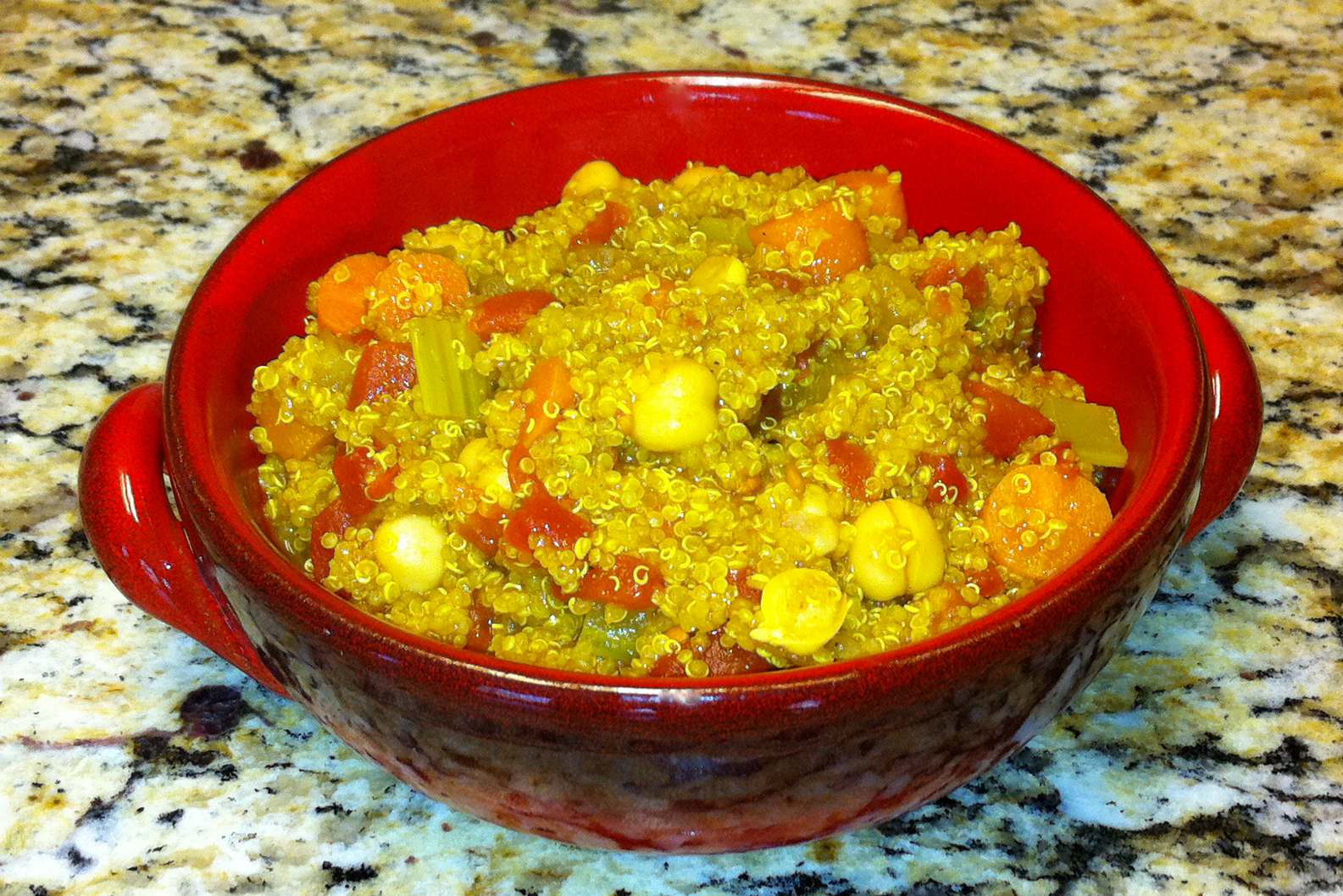 Recipe adapted from Curry Quinoa Recipe in Stir-Well to Heaven.