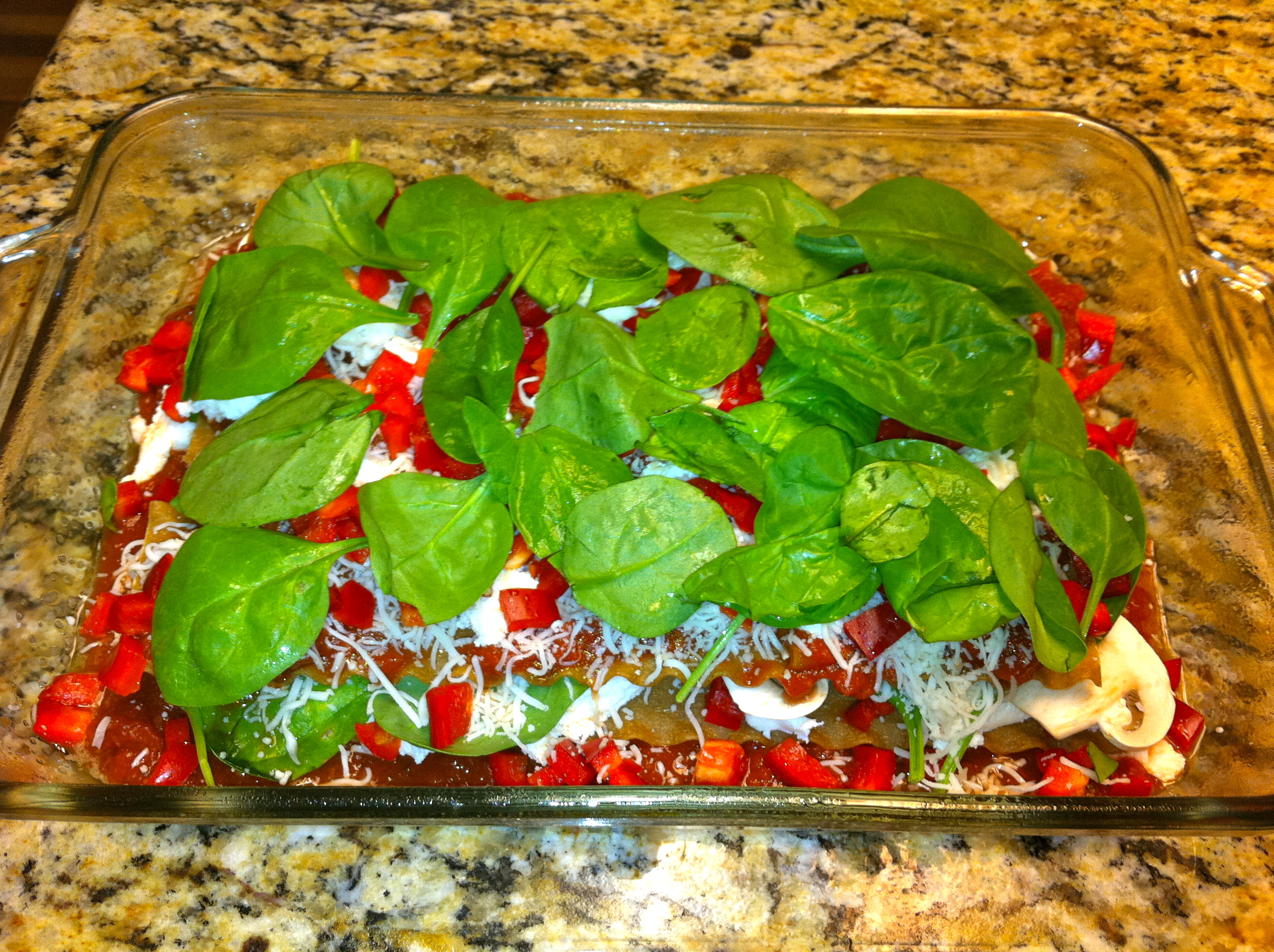 - Tagged: baby spinach, bell pepper, lasagna, marinara, mozzarella, noodles, ricotta, vegetarian, vegetarian lasagna recipe, wheat lasagna