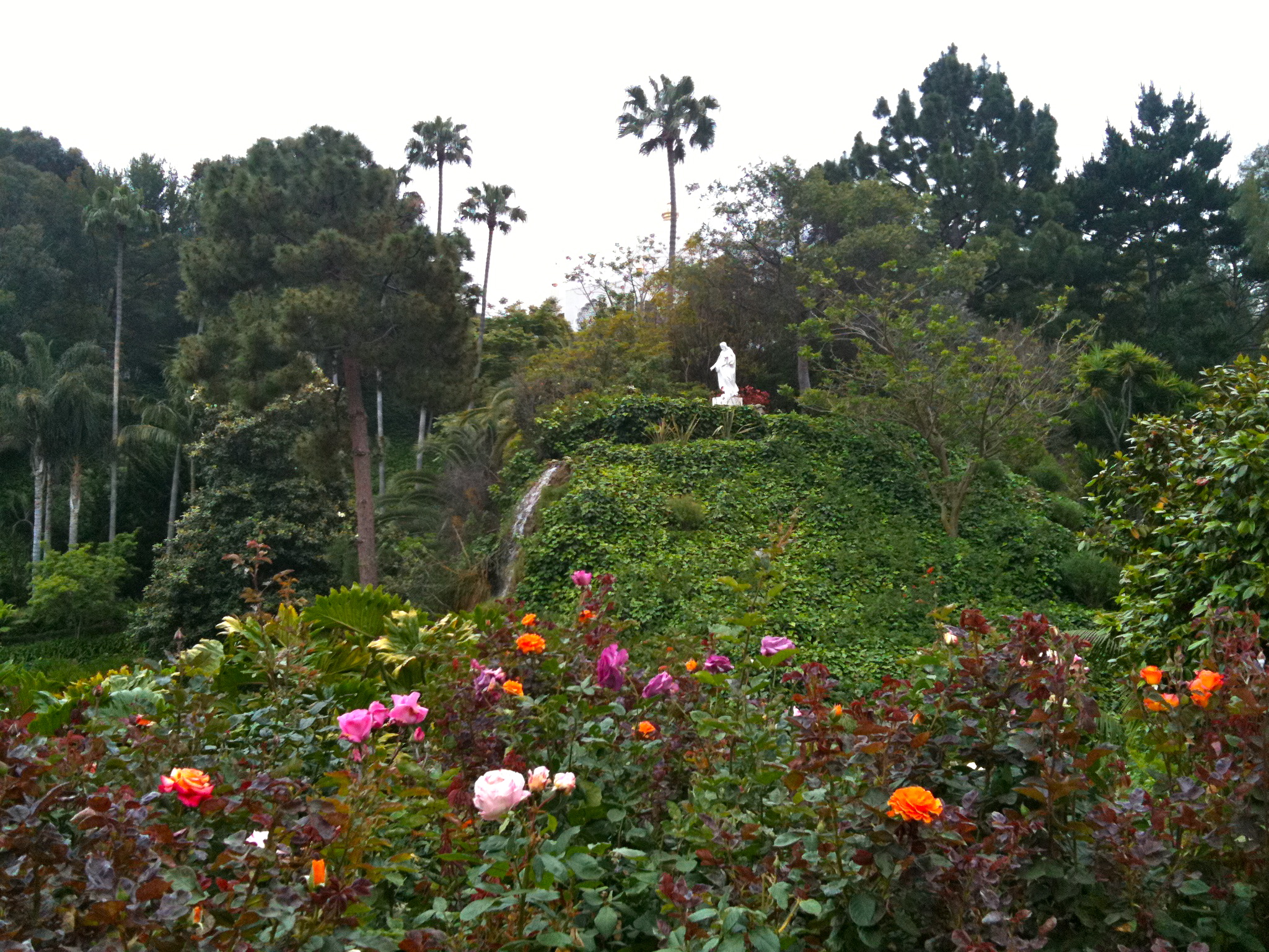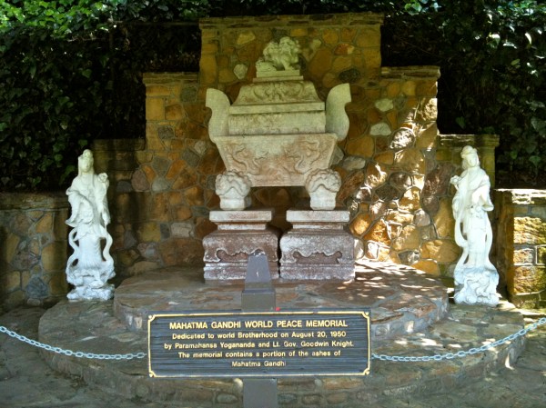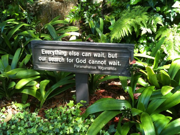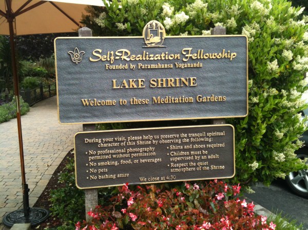 Several times a year I like to get away for a retreat. My favorite spot is the SRF Lake Shrine. The Lake Shrine is incredibly beautiful and has a wide variety of flowers, plants and trees from all over the world. It is also a very spiritual place. As soon as you walk into the gardens you feel incredible peace and safety from the world. It is like an oasis, perhaps like the Garden of Eden, but right in the middle of Los Angeles off of Sunset Boulevard! Ok, well actually it’s in Pacific Palisades, CA, but close enough to LA!