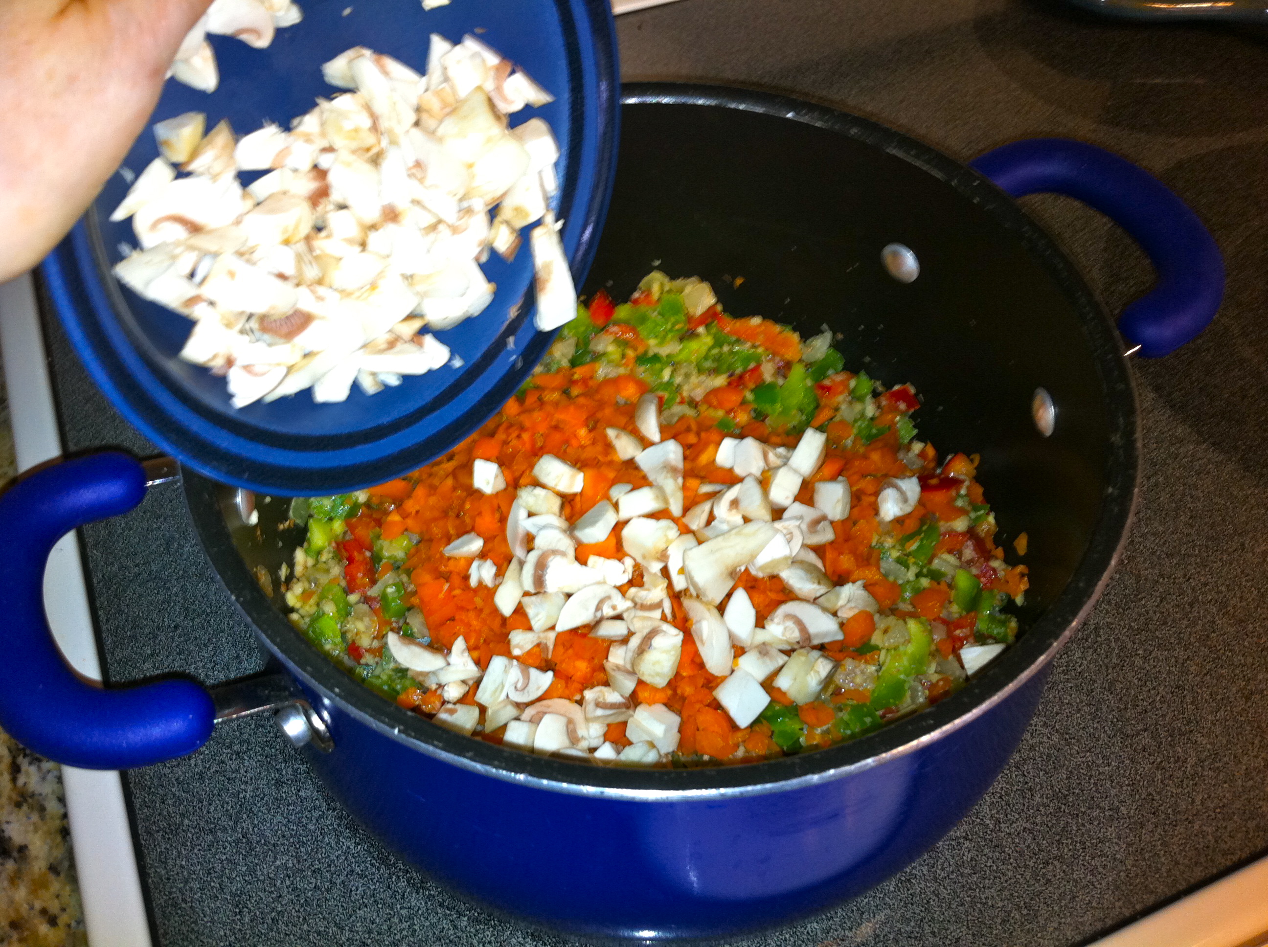 I adapted the recipe from Bonnie Stern’s recipe in Simply HeartSmart Cooking adding some veggies. I think if I made it again I’d try increasing the amount of veggies, but the way I made it was pretty good. 🙂