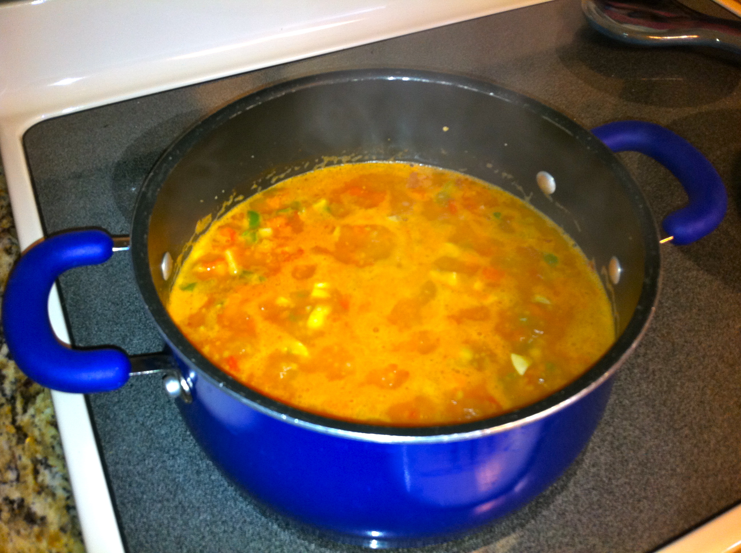 I’ve had a hankering for tomatoes lately and couldn’t stop thinking about this peanut and tomato stew that I found some time ago on Allrecipes.com. It can be eaten on its own, but it is also a great sauce to put on top of things like nut burgers and lentil loaf, which I will post about soon. I have adapted the recipe a little from the original.